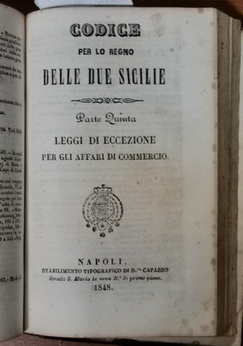 Parte Quinta: Leggi di eccezione per gli affari del commercio.