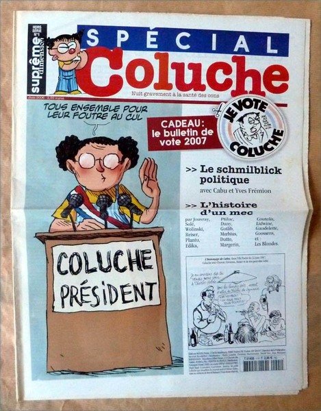 Un album de format in 4° de 80 pp. ; illustré par la plupart des dessinateurs humoristiques de l'époque. On joint Suprême Dimension Hors Série N°1; Spécial Coluche: un journal de format in folio de 16 pp. avec Reiser, Wolinski, moebius. . Comme neuf. Ensemble rare. Voir les photos.