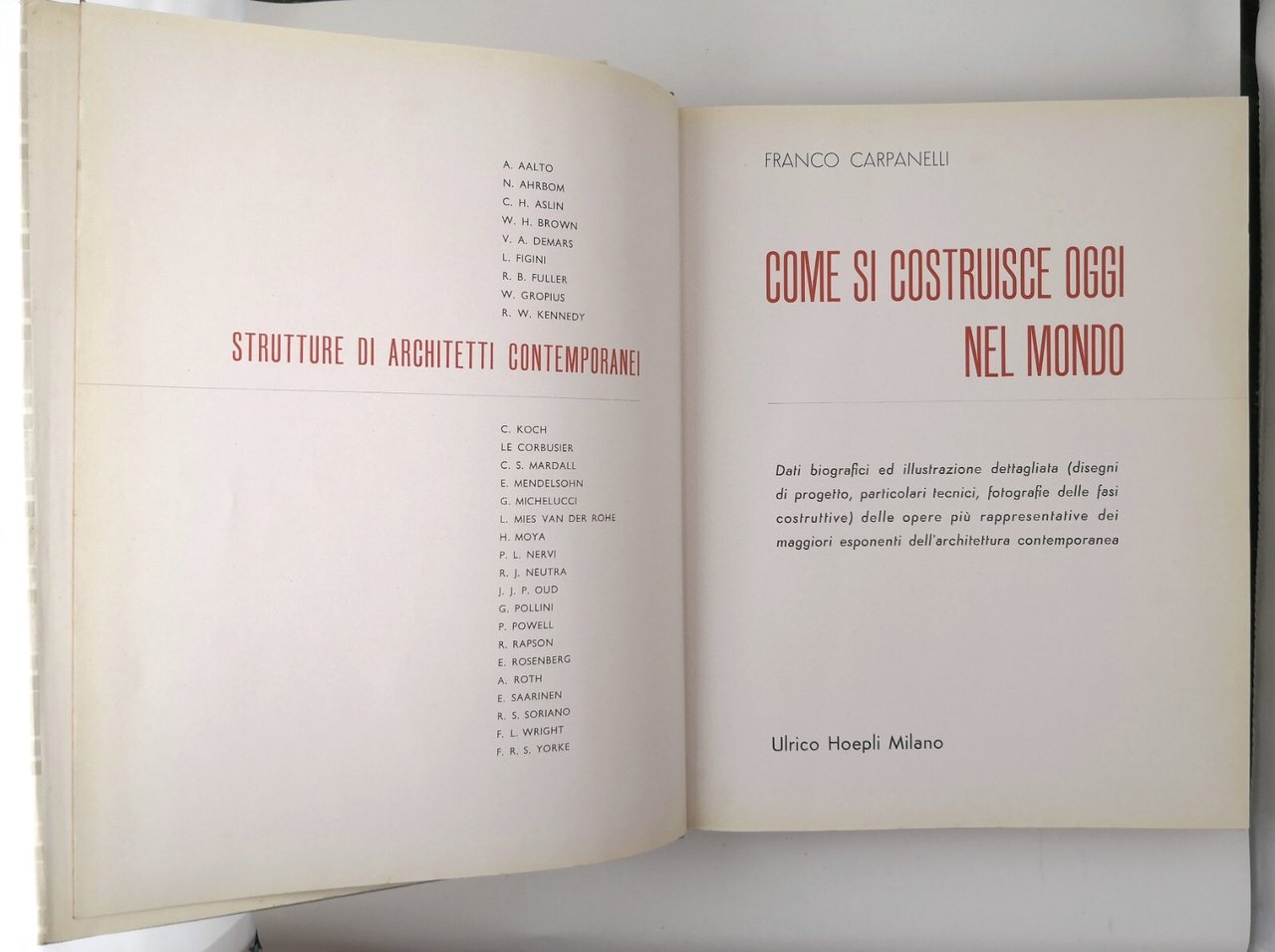 COME SI COSTRUISCE OGGI NEL MONDO di Franco Carpanelli 1956 Hoepli Libro usato