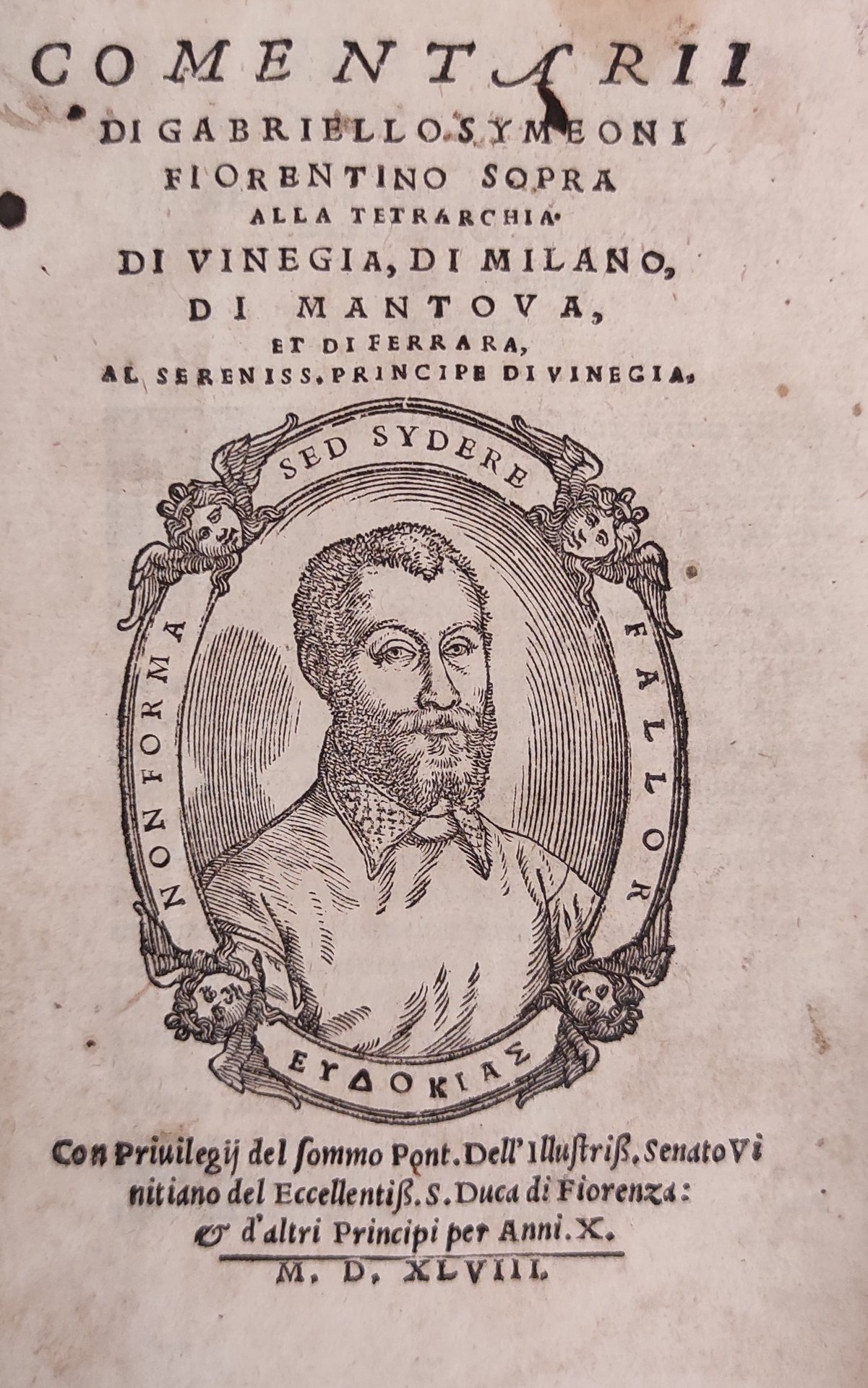 COMENTARII DI GABRIELLO SYMEONI FIORENTINO SOPRA ALLA TETRARCHIA DI VINEGIA, DI MILANO, DI MANTOVA ET DI FERRARA