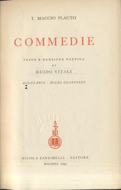 COMMEDIE di Plauto VOLUME I 1944 Zanichelli testo latino fronte Aulularia Libro
