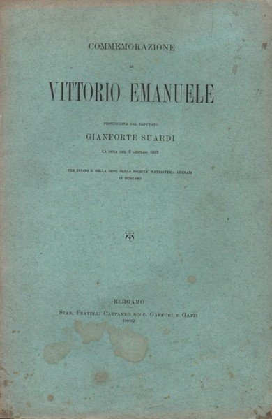Commemorazione di Vittorio Emanuele. Pronunciata dal deputato Gianforte Suardi la sera del 9 gennaio 1892. Per invito e nella sede della Società Patriottica Operaia di Bergamo.