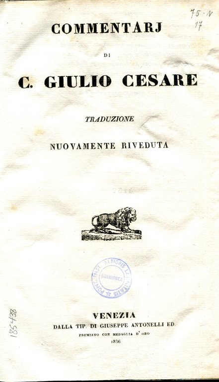 Commentarj di C. Giulio Cesare. Traduzione nuovamente riveduta