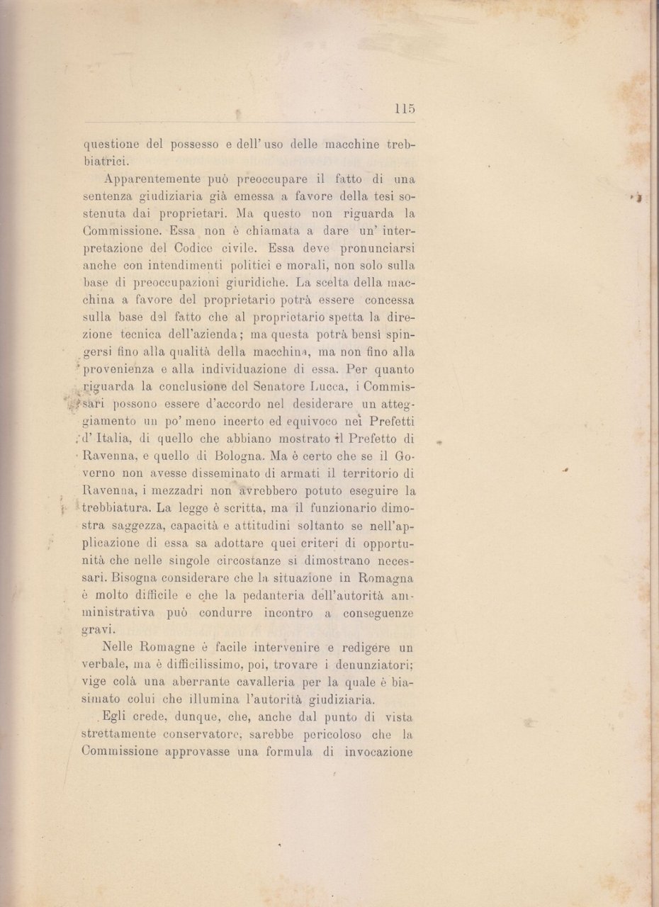 COMMISSIONE DI INCHIESTA SUI CONFLITTI AGRARI IN ROMAGNA Verbali delle sedute.