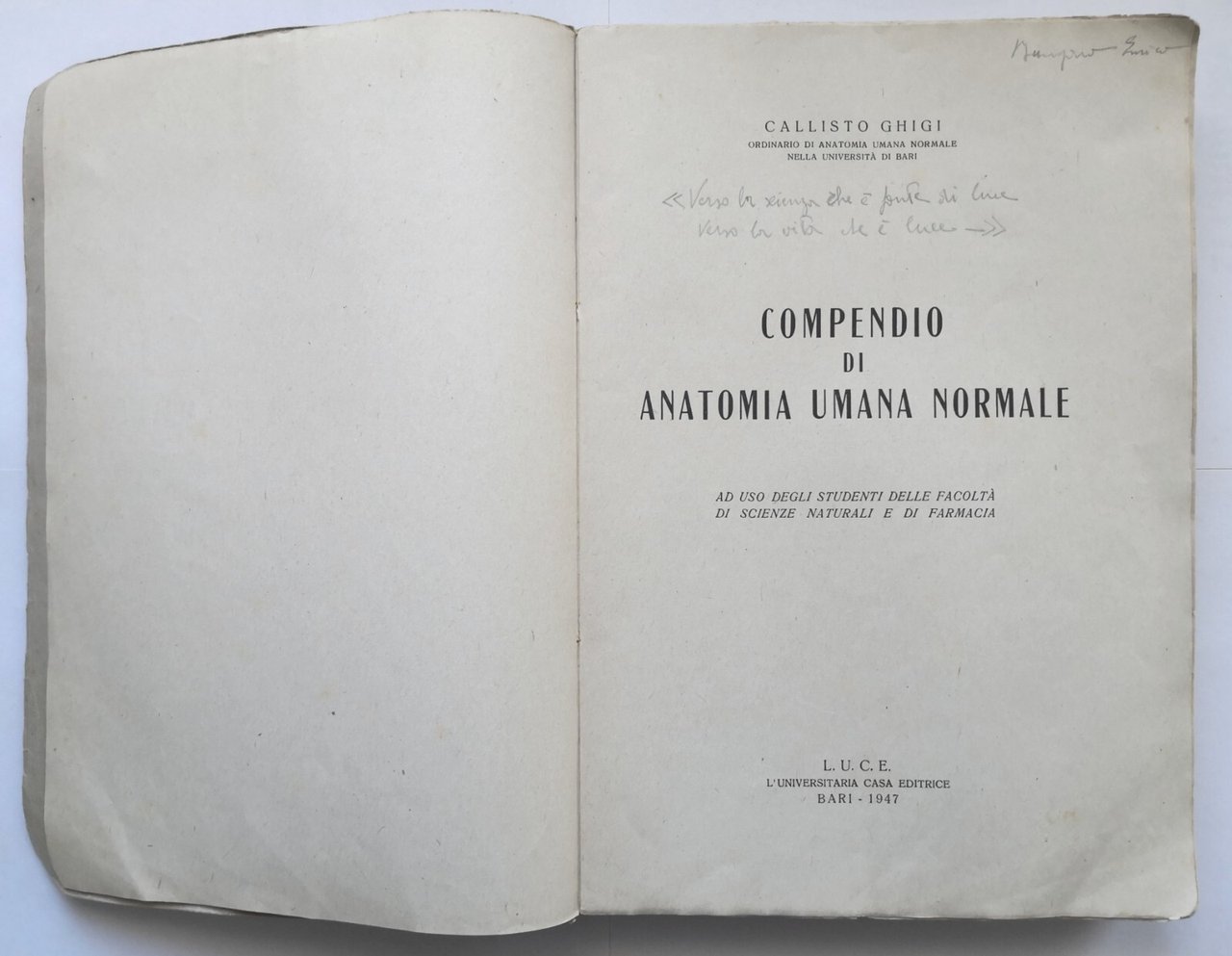 COMPENDIO DI ANATOMIA UMANA NORMALE di Callisto Ghigi 1947 LUCE