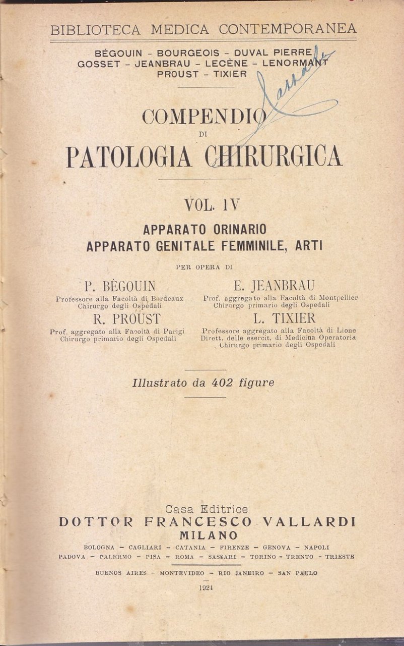COMPENDIO DI PATOLOGIA CHIRURGICA Begouin Gosset 4 volumi COMPLETA 1924 libro