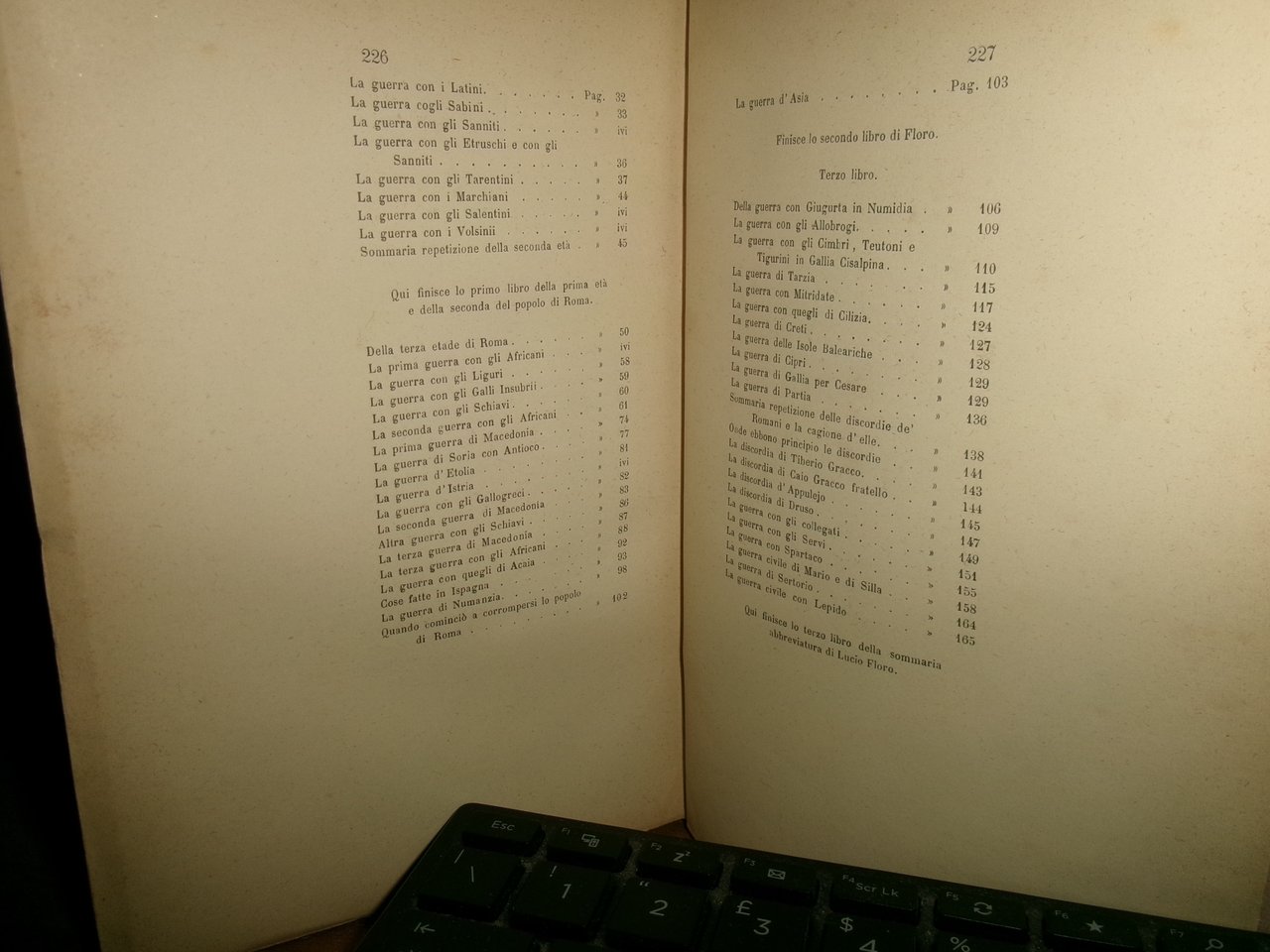(Curiosità letterarie inedite o rare). Floro, Lucio Anneo. Bologna, Gaetano Romagnoli, 1881. Compendio di storia romana. Volgarizzamento inedito secondo un codice dell' Ambrosiana pubblicato per cura di Antonio Ceruti. In-16°, cartone marmorizzato con tassello al dorso, copertine originali conservate. XLV, (1), 228 pp. Edizione di soli 202 esemplari (es. n° 44). Ottimamente conservato ed intonso. Uff. scat. 6