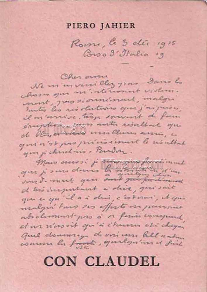 in 16°; pp. 120 + 1 tav. (ill. in bn.); br. con fascetta edit.; coll. Narratori; 1^ ed. A cura di Vanni Scheiwiller. Con un allegato "Ballata dell'uomo piu libero". Foto di Claudel in antiporta. Tiratura di 1000 esemplari numerati