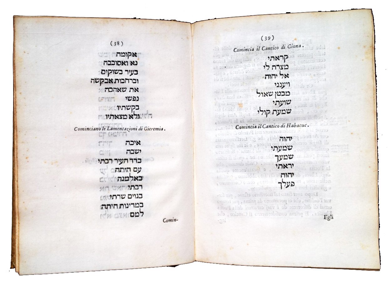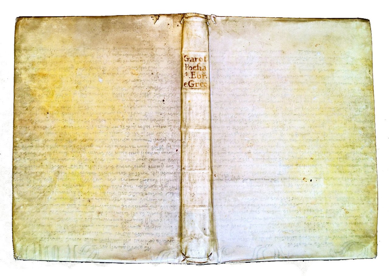 in-4° (236x170 mm); legatura coeva con riuso di antica pergamena scritta sul retro, titolo manoscritto al dorso; pp. XVI, 61, [3], 131, [1]. Fregio xil. sul front., iniziali xilografiche. Titolo dell'occhietto: "Della poesia degli Ebrei, e de i Greci". A c. A1r inizia con proprio occhetto "Della poesia degli Ebrei all'eminentissimo sig. cardinale Lorenzo Casoni"; a c. ²A1r inizia con proprio occhietto "Della poesia de i Greci all'illustrissima, ed eccellentissima signora d. Flaminia Borghese". Prima edizione di questo testo erudito, in lingua italiana, ebraica e greca, sulla poesia hebraica e la ooesia greca arcaica. L'opera è incentrata sugli usi linguistici e metrici nella poesia ebraica e in quella latina e greca. Alcuni paragrafi in ebraico inseriti nel testo. Tra il 1716 e 1718 fu messo all'Indice con l'accusa di aver trattato la Bibbia alla stregua di un libro profano. Prov.: Etichetta d'appartanenza incollata al contropiatto anteriore (Ex libris Frederic North). Frederick North (1732-1792) è stato un politico inglese, secondo conte di Guilford. Ha fatto parte del Partito Conservatore, è stato Primo Ministro del Regno di Gran Bretagna dal 28 gennaio 1770 al 22 marzo 1782. Ha guidato la Gran Bretagna attraverso la maggior parte della Guerra d'indipendenza americana. Ha anche ricoperto un certo numero di altri incarichi di gabinetto, tra cui il ministro degli Interni e il cancelliere dell'erario. Rif.: IT\ICCU\UBOE\003417. OCLC, 945675953. Cond.: Lievi segni d'uso alla legatura. Testo marginoso, pagine croccanti con occasionale presenza di foxing. Opera nel complesso molto buona. Peso 465 g. -- Two parts in one volume of this work on Hebraic and Greek Poetry. Text in Italian and Greek. Bound in previously used vellum. Book plate on inside front cover of the Honourable Frederick North. Frederick North, 2nd Earl of Guilford, KG, PC (1732-1792), better known by his courtesy title Lord North, was Prime Minister of Great Britain from 1770 to 1782. He led Great Britain through most of the American War of Independence. He also held a number of other cabinet posts, including Home Secretary and Chancellor of the Exchequer. Crispy leaves with occasional foxing. Overall, a very good copy.
