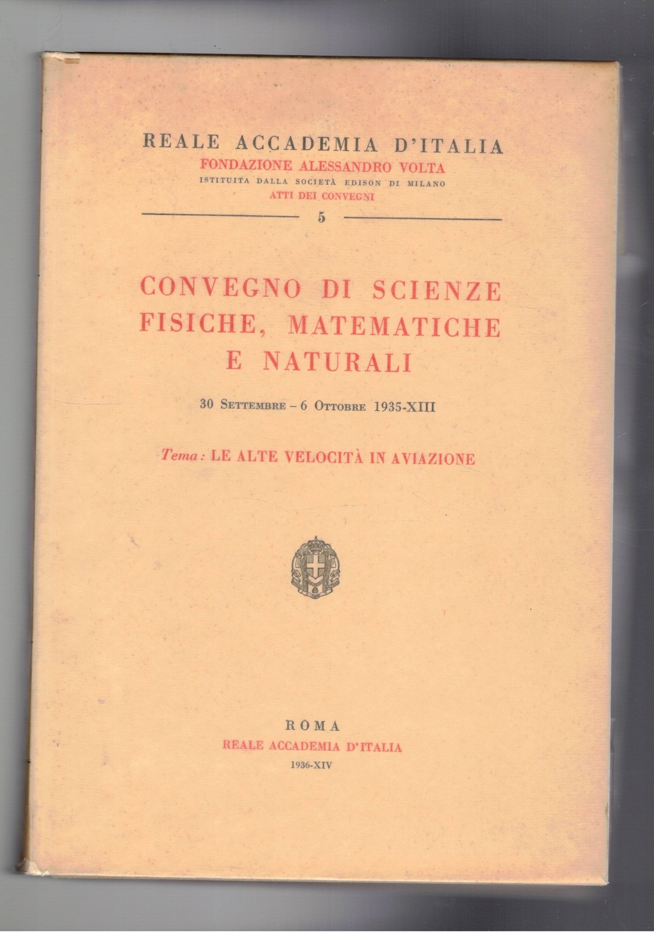 Convegno scienze fisiche, matematiche e naturali 30 set. - 6 ott. 1935. Tema: le alte velocità in aviazione.