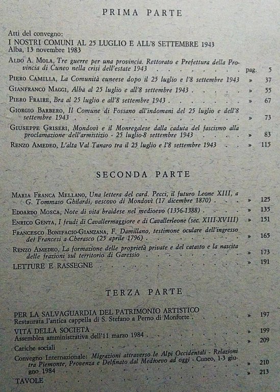 Atti del Convegno: I NOSTRI COMUNI AL 25 LUGLIO E ALL'8 SETTEMBRE 1943, Alba, 13 novembre 1983. Bollettino della Società per gli Studi Storici, Archeologici ed Artistici della Provincia di Cuneo, N. 90, 1°semestre 1984.