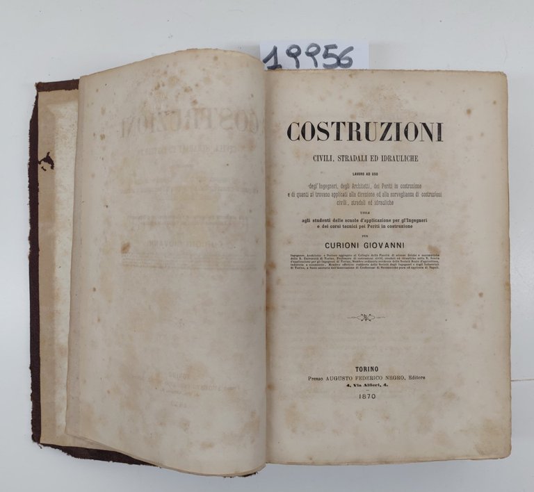 due volumi nello stesso tomo: primo volume: costruzione civili stradali e di idrauliche lavoro ad uso degli ingegneri degli architetti dei periti in costruzione e di quanti si trovano applicati alla direzione alla sorveglianza dei costruzioni civili stradali ed idrauliche per curioni Giovanni Torino Federico negro 1870