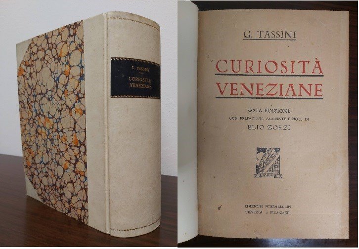 gr. vol. in-4, pp.XXXIX, 831, bella rileg. m. perg. mod. con tass. e tit. oro al d., angoli, piatti in cart. dec. Sesta edizione sulla prima rara del 1863 (già alla data della seconda edizione gli editori scrivevano che "quest'opera venne ben presto esaurita [.] ed ora pochissime copie se ne possono ritrovare in commercio"). Edizione postuma a cura di E. Zorzi. Fondamentale opera per lo studio della nomenclatura delle strade veneziane. Ottimo stato di conservaz. [362]