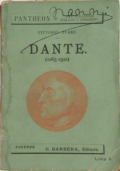 in-16, pp. 242, bross. edit. Bella e curata biografia di Dante con aneddoti, leggende e novelle. Firma di appartenenza sulla prima cop. [372]