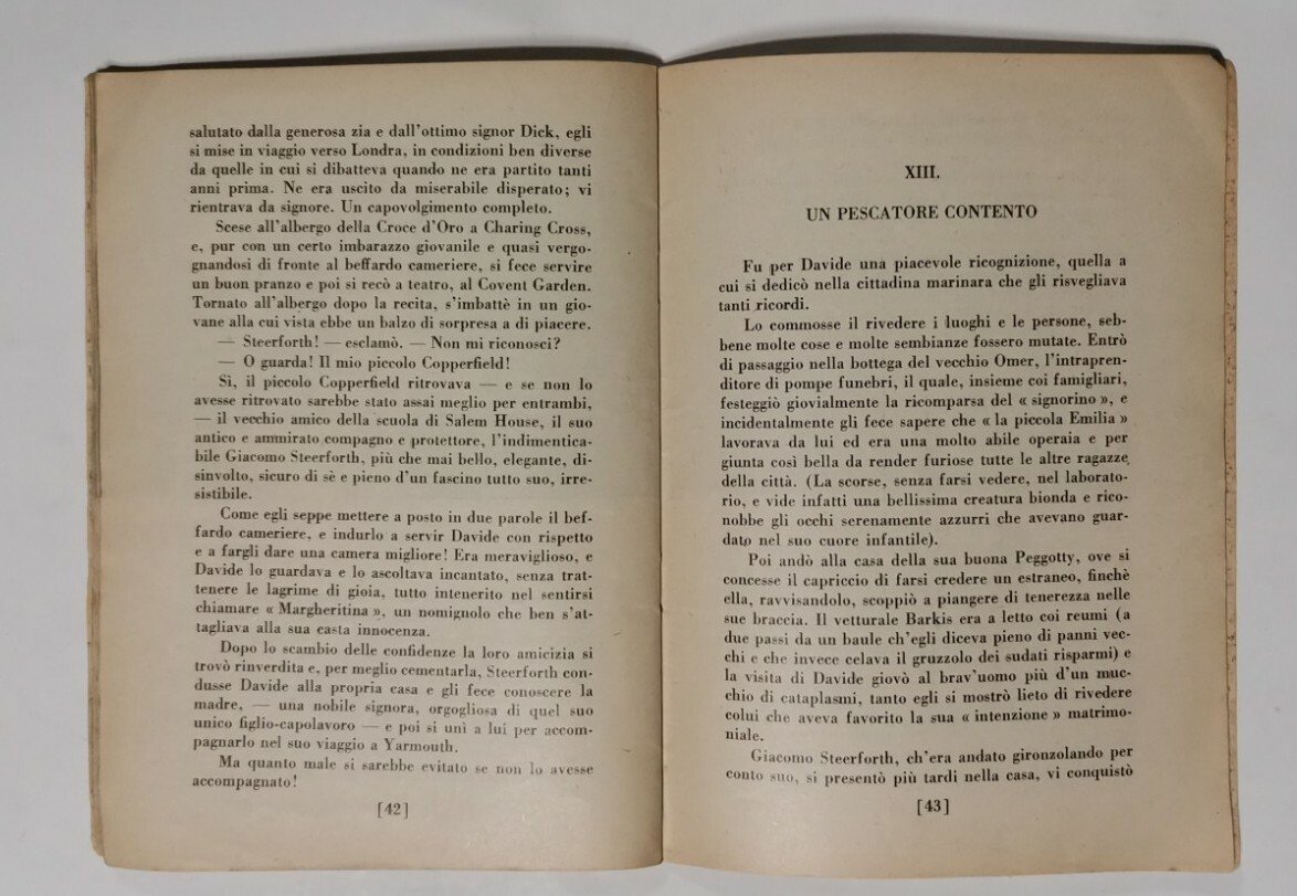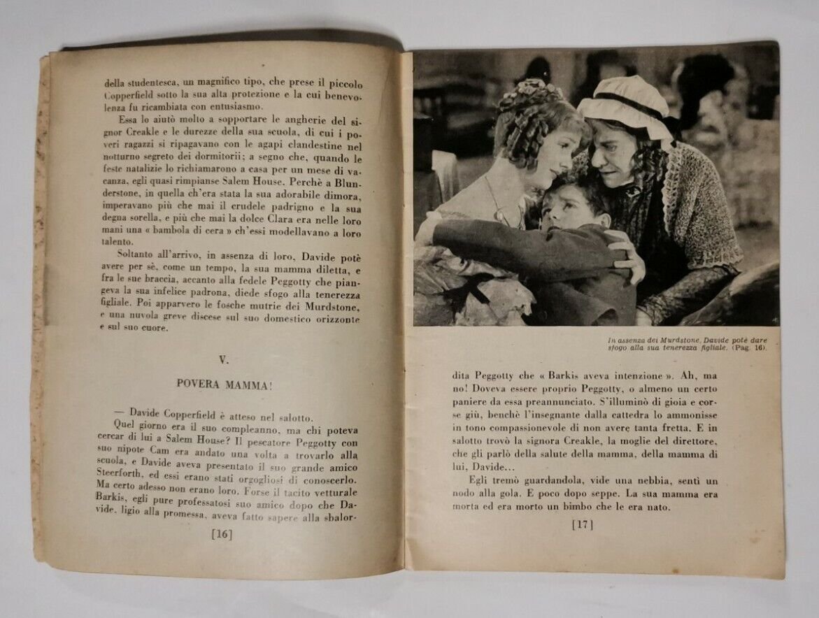DAVIDE COPPERFIELD Curioso racconto tratto dalla scenografia del film omonimo della Metro Goldwyn Mayer degli anni '30. Sonzogno Editore 1935. 63 pagine, molte foto in bianco e nero tratte dal film. Copertina editoriale in carta. Dimensioni 14x19,5 cm. Stato di conservazione: molto buono (copertina sciupata, pagine ingiallite).