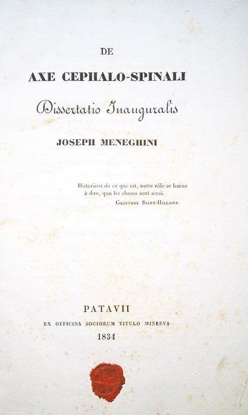 De axe cephalo-spinali dissertatio inauguralis. Joseph Meneghini. | Livres anciens et modernes | Meneghini, Giuseppe