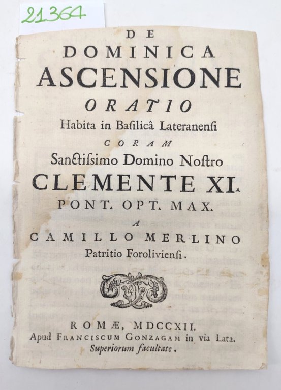De dominica ascensione oratio Clemente XI Pont. a Camillo Merlino Patrizio Roma 1712