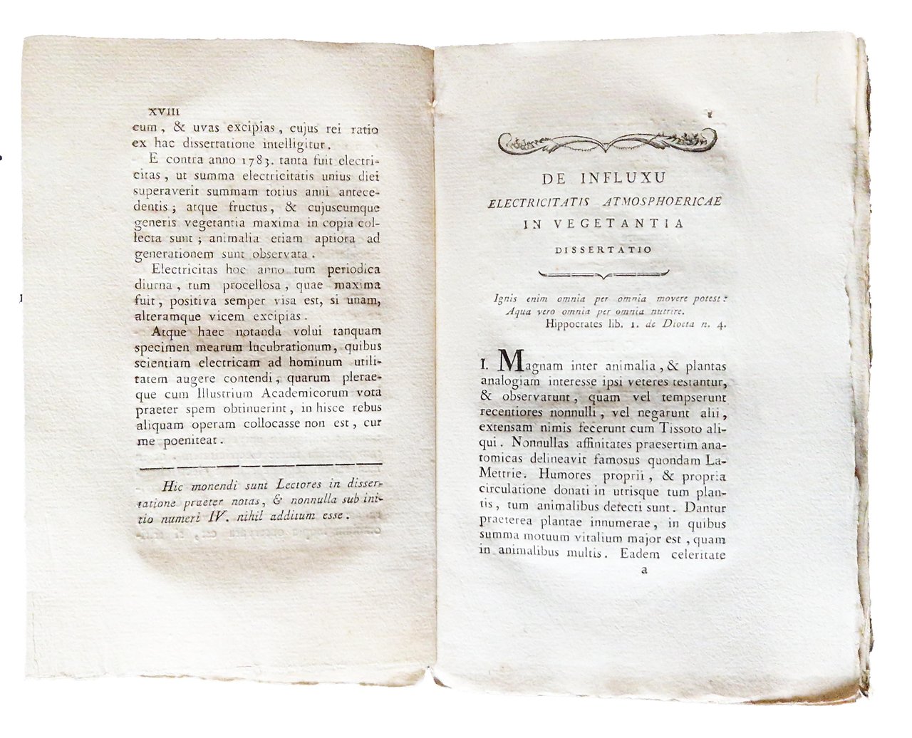 De influxu electricitatis atmosphaericae in vegetantia dissertatio ab Academia Lugdunensi praemio donata an. 1782. Francisci Josephi Gardini phil. et med. doct. taurin. […]. | Livres anciens et modernes | Gardini, Francesco Giuseppe