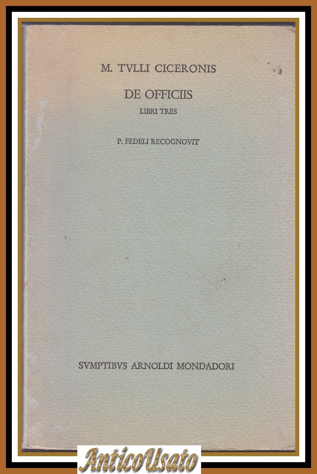 DE OFFICIIS libri tres M Tullii Ciceronis 1965 Mondadori P Fedeli Libro latino