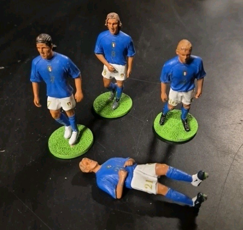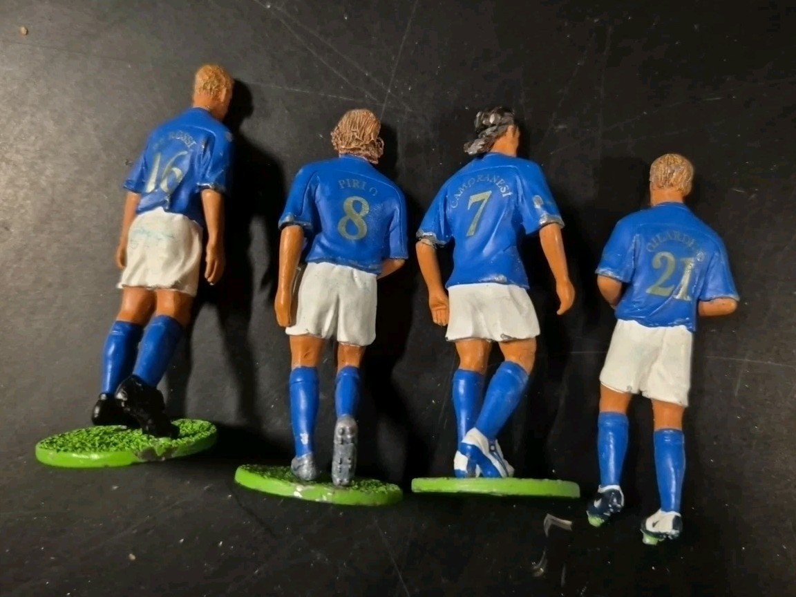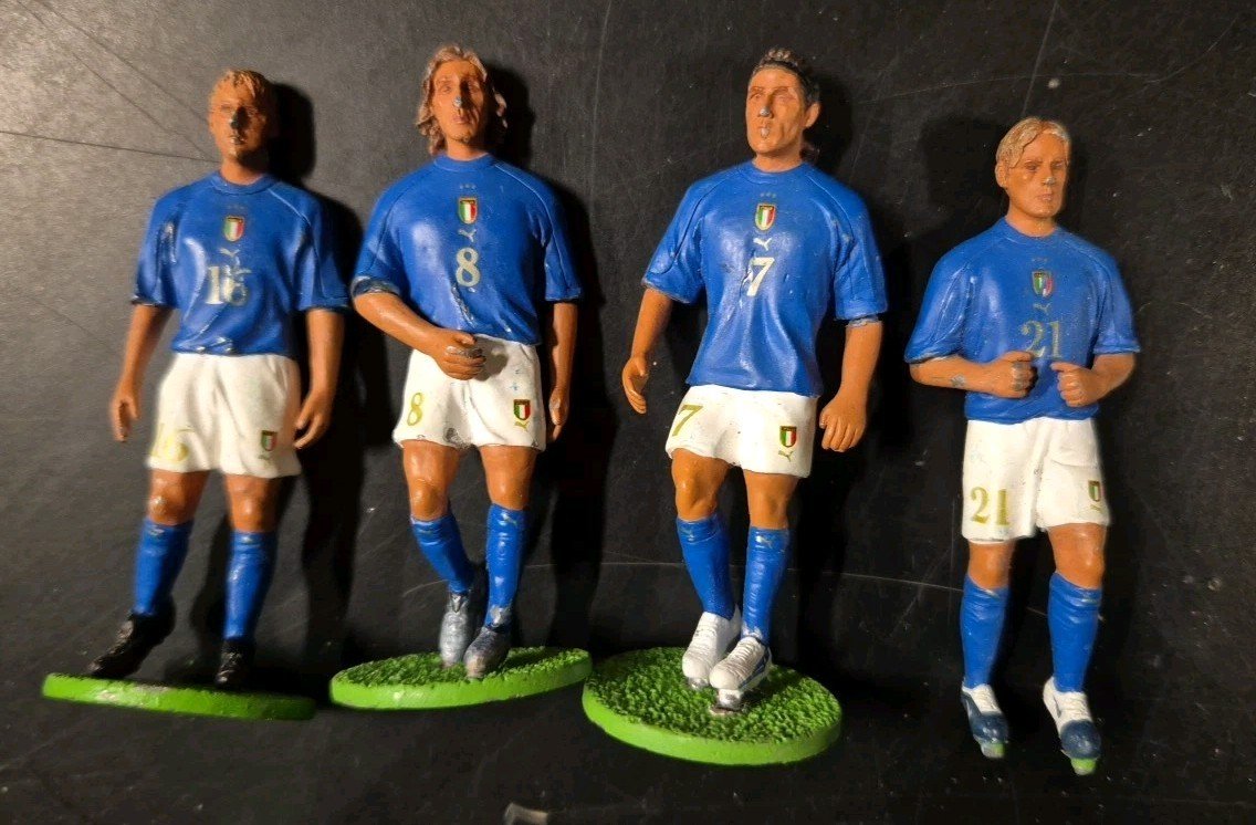 QUATTRO STATUINE IN PIOMBO dipinto della De Agostini, rappresentanti i calciatori della Nazionale Italiana Pirlo, De Rossi, Camoranesi e Gilardino.