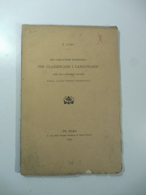 Dei caratteri intrinseci per classificare i Langobardi nelle loro attinenze storiche cogli altri popoli germanici