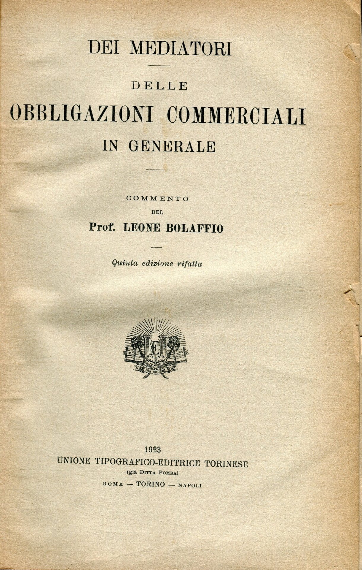 Dei mediatori, delle obbligazioni commerciali in generale. Quinta edizione rifatta.