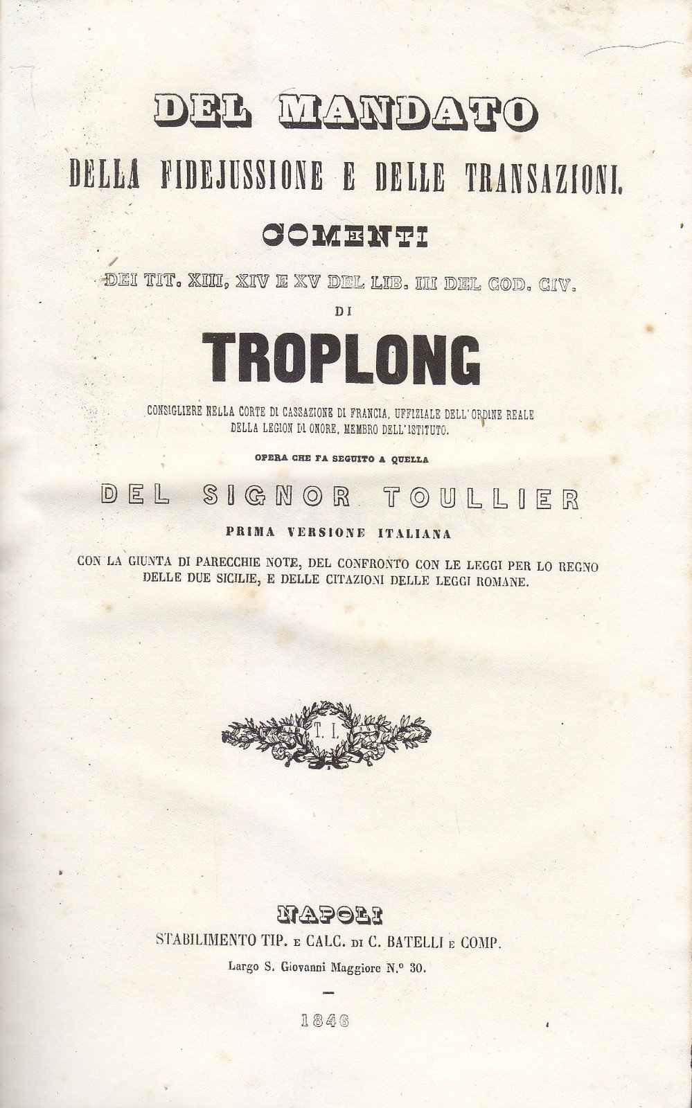 Napoli, Stabilimento Tipografico e Calc. Batelli 1846.