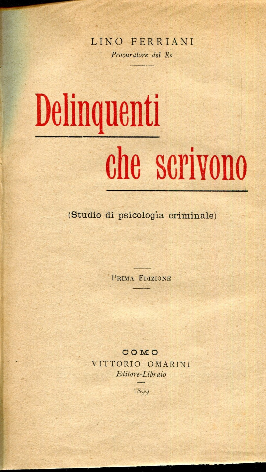 Delinquenti che scrivono. Studio di psicologia criminale. I^ edizione