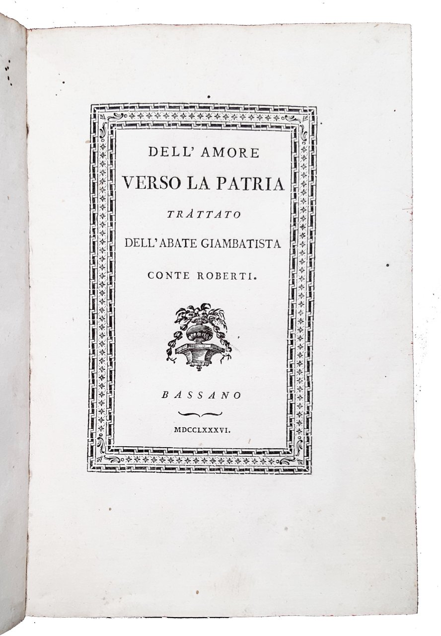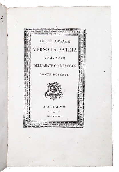 Dell'amore verso la patria, trattato dell'abate Giambatista conte Roberti. | Livres anciens et modernes | Roberti, Giovanni Battista