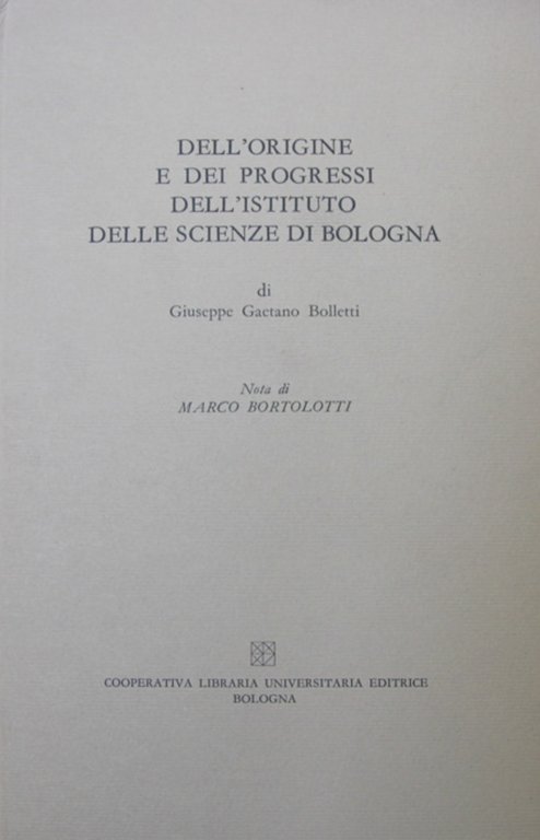Bologna, CLUE, 1977, in 8vo, Copertina rigida, 126 pp. Tavole allegate con disegni e plnimetrie dell'Istituto. Ristampa anastatica dell'edizione 1751 di Lelio dalla Volpe con nota introduttiva di Marco Bortolotti. 945.411 LOC In Ottavi (15-23cm ) Ottimo (Fine) Ottimo