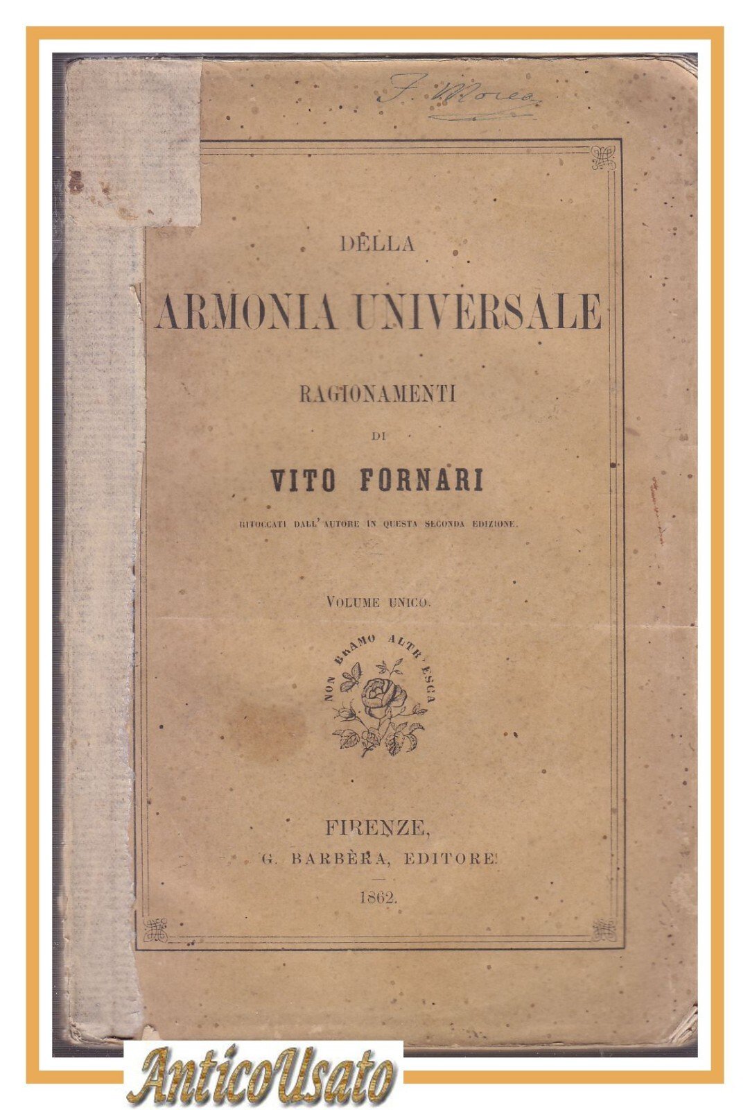 DELLA ARMONIA UNIVERSALE ragionamenti di Vito Fornari 1862 libro filosofia
