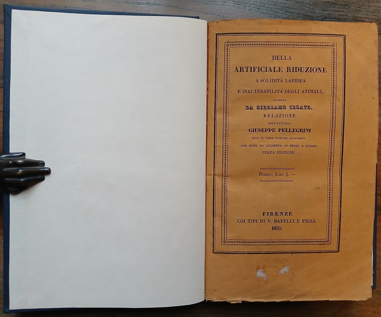Della artificiale riduzione a solidità lapidea e inalterabilità degli animali scoperta da Girolamo Segato. Relazione dell'avvocato Giuseppe Pellegrini socio di varie illustri accademie, con note ed aggiunte di prose e poesie. Terza edizione.