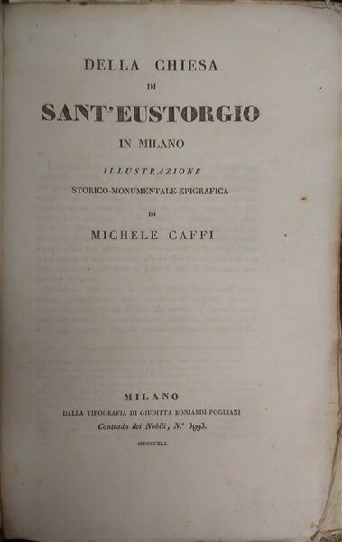 DELLA CHIESA DI SANT’EUSTORGIO in Milano. Illustrazione storico-monumentale-epigrafica.