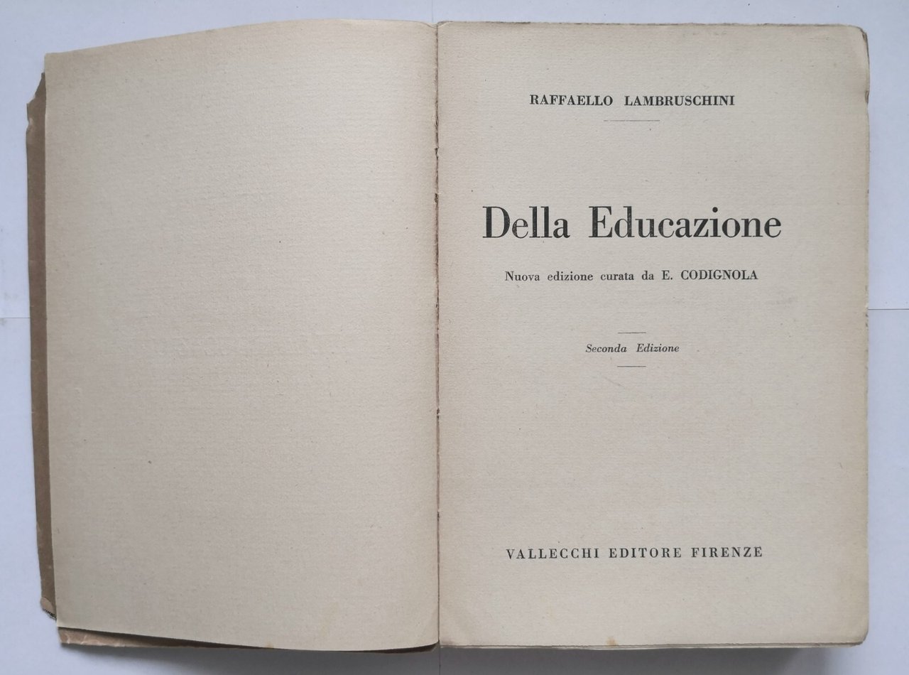 DELLA EDUCAZIONE di Raffaello Lambruschini 1923 Vallecchi Libro la nostra scuola