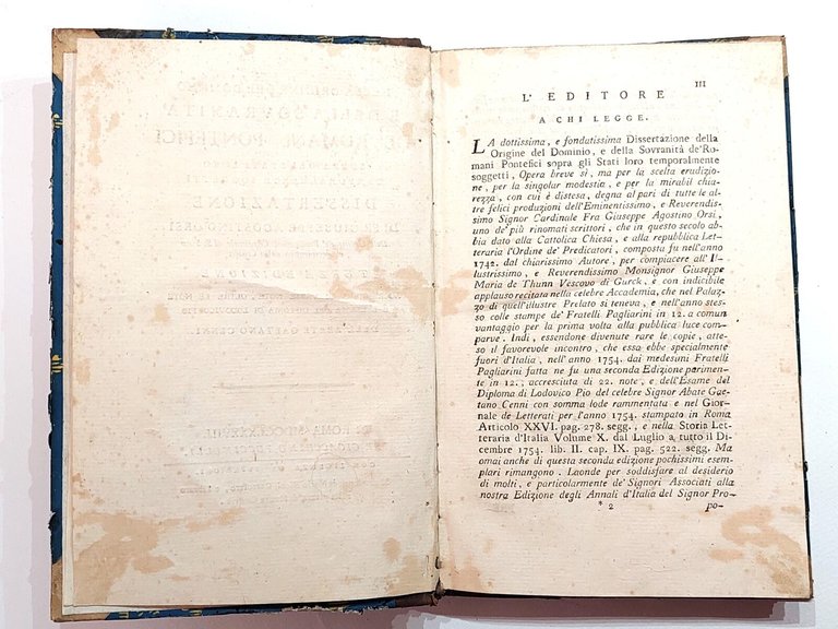 Della origine del dominio e della sovranità de' romani Pontefici sopra gli stati loro temporalmente soggetti Dissertazione di Fr. Giuseppe Agostino Orsi 3° edizione accresciuta di varie note, oltre le note e l'esame del diploma di Lodovico Pio dell'abate Gaetano Cenni Roma 1788