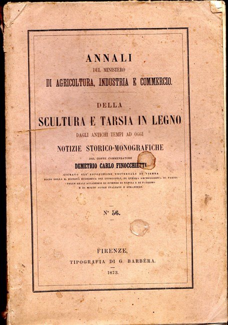 DELLA SCULTURA E TARSIA IN LEGNO dagli antichi tempi ad oggi. Notizie storico monografiche del Conte.