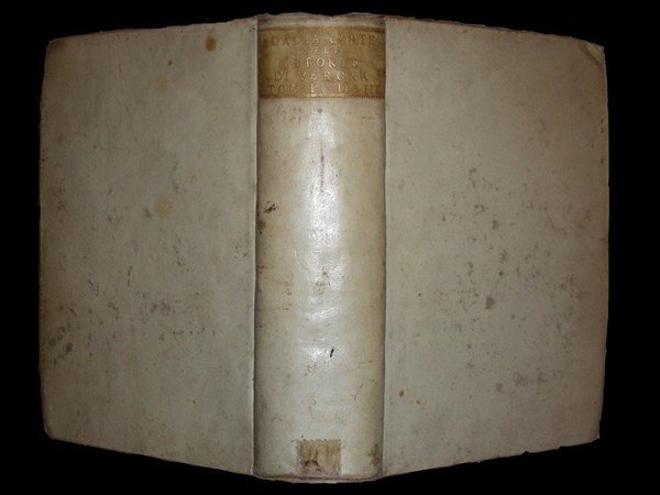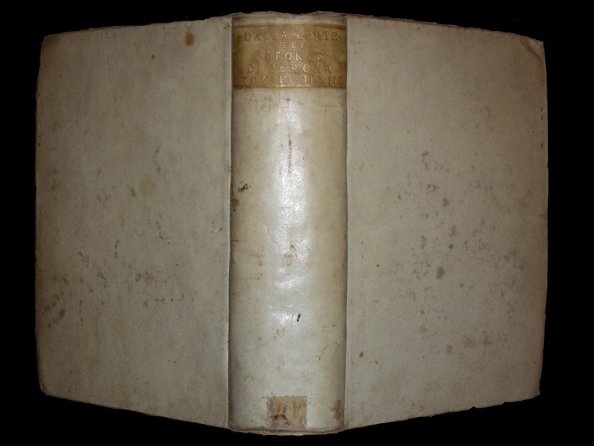 3 parti in un gr. vol. in-4, pp. VIII, 391; 386; 356, belliss. leg. p. perg. coeva con tit. mss ai d. Tagli rossi. Vignetta in legno ai front. e iniziali xilogr. Edizione settecentesca sulla rara ediz. originale del 1594. Lozzi 6271: “Peccato che questo bel lavoro storico fu interrotto al XX libro per la morte dell’Autore!”. Ex libris. Splendido esempl. in ottimo stato di conservazione. [221]