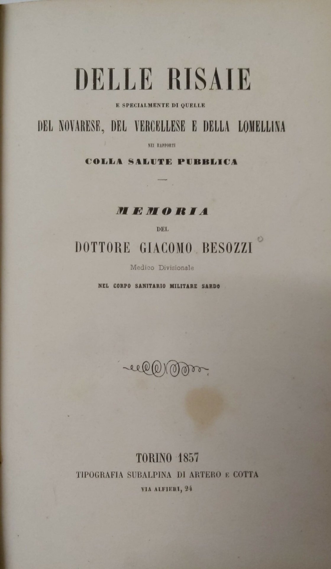 DELLE RISAIE e specialmente di quelle del Novarese, del Vercellese e della Lomellina nei rapporti colla salute pubblica. Memoria.