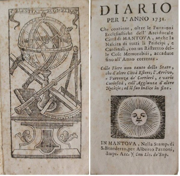 in-16, pp. 240, leg. cart. dec. coeva. Antip. con bella incis. xilogr. dell'astrolabio. Vignetta al front. e testat. xilogr. per ciascun mese dell'anno, fregi e final. [253]