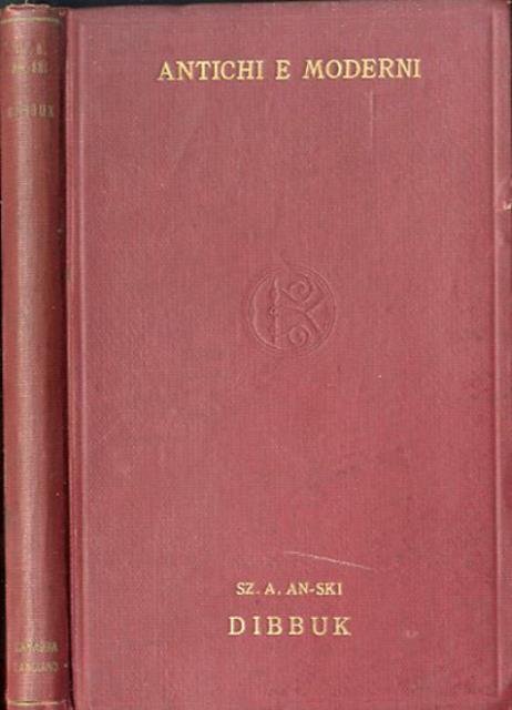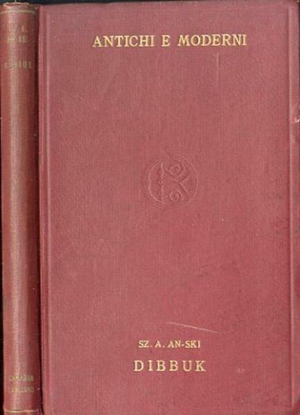 123 p. ; 18 x 12 cm. Antichi e moderni, 3. La tragica storia di un amore impossibile: il giovane e povero Chanan non può sposare l’amata Lea. Disperato Chanan muore e la sua anima entra nel corpo di Lea. La tradizionale demonologia ebraica chiama questa possessione “dibbuk” figura centrale nel mondo del del misticismo ebraico che rappresenta l’annullamento del confine tra terreno e ultraterreno tra razionale e magico. Un dibbuk è nella tradizionale demonologia ebraica un’anima in pena erratica derelitta infranta sospesa tra due mondi l’anima di un morto che si reincarna uno spirito non acquietato perchè morto di morte violenta e che cerca di soddisfare la sua avidità di vita entrando nel corpo di un vivo. Titolo originale dell'opera: «Dibbuk». Traduzione dal russo di Raissa Olkienizkaia-Naldi. L'autore, Sholem An-Ski, il suo vero nome era Shlomo Seinvel Rapapport, scrisse poesie e inni, ma è famoso per questo dramma, «Il Dibbuk», scritto in yiddish, che ebbe un enorme successo dopo la sua morte. Legatura editoriale, coperta in cartone rigido telato di colore bordo, con il titolo impresso in oro al piatto e al dorso. Qualche segno del tempo, alcune sottolineature a matita a pag. 7, leggero ingiallimento della carta delle pagine interne, per il resto esemplare integro. Codice libreria 6736.
