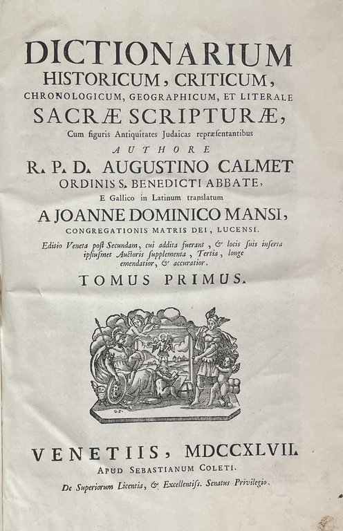 DICTIONARIUM HISTORICUM, CRITICUM, CHRONOLOGICUM, GEOGRAPHICUM, ET LITERALE SACRAE SCRIPTURAE, CUM FIGURIS ANTIQUITATES JUDAICAS REPRAESENTANTIBUS