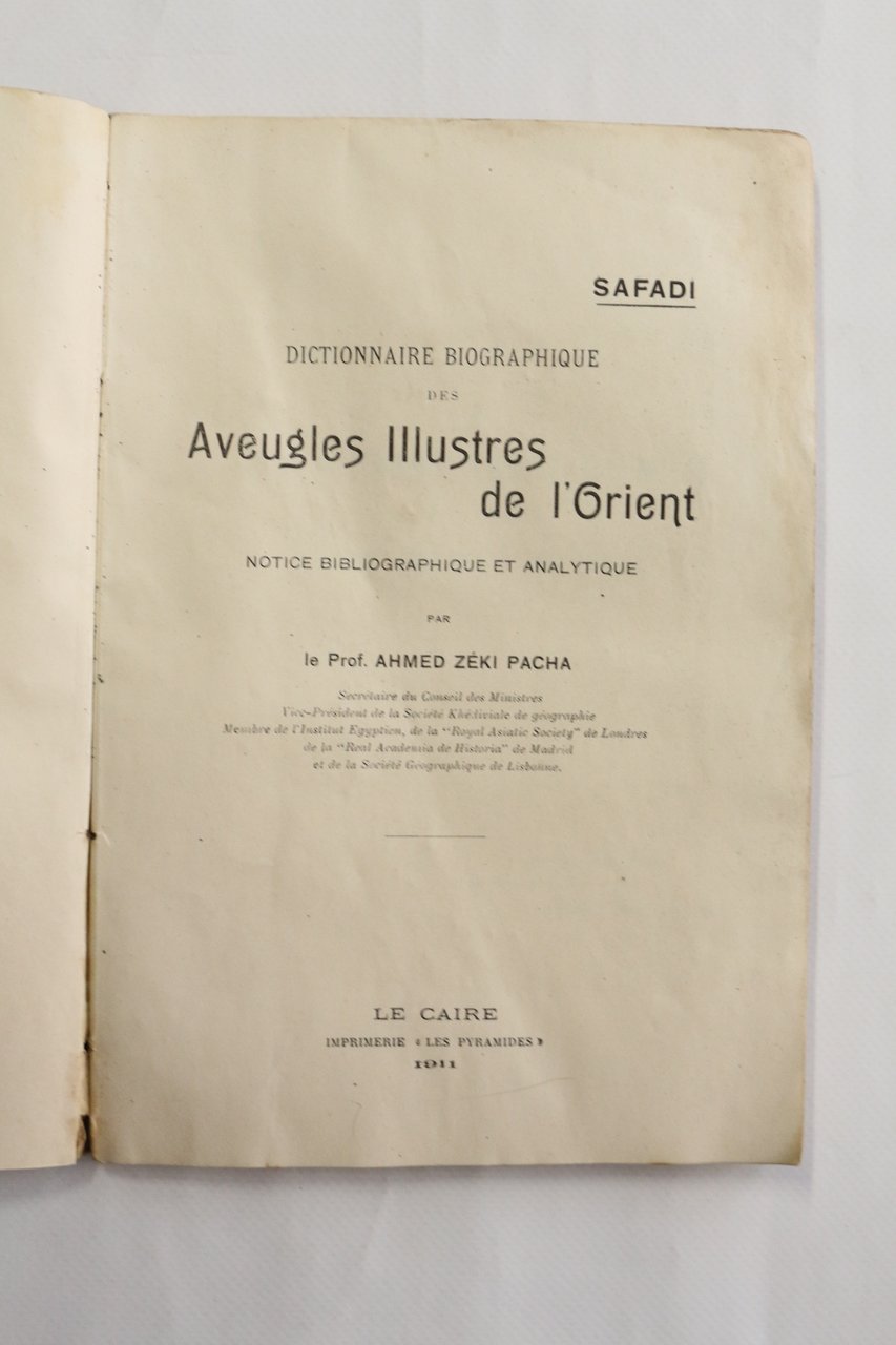 Dictionnaire biographique des aveugles illustres de l'Orient | Livres anciens et modernes | Ahmed Zeki Pacha
