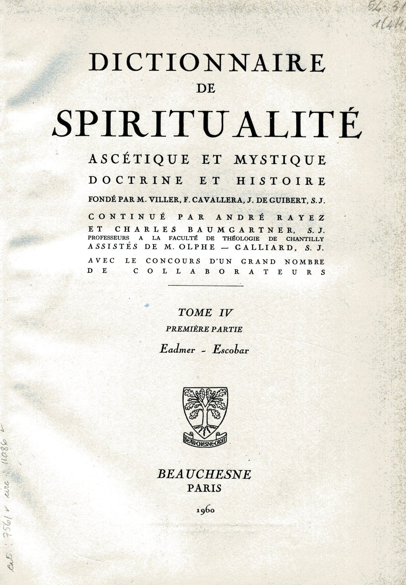 Dictionnaire de spiritualitè ascetique et mystique doctrine et histoire 12 volumi.