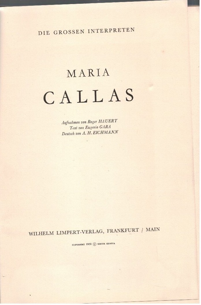 Brossura in cartoncino muto, composto da 30 pagine con bellissime foto in BN di Maria callas. In lingua tedesca, opera ben conservata