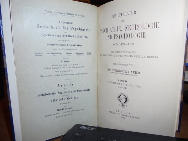 Die Literatur der Psychiatrie, Neurologie und Psychologie von 1459 - 1799 | Livres anciens et modernes | Heinrich, Laehr