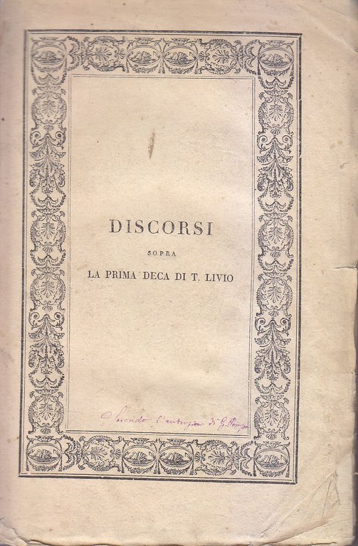 Discorsi Di Niccolò Machiavelli Sopra Prima Deca Tito Livio Volume 2 1824 Libro