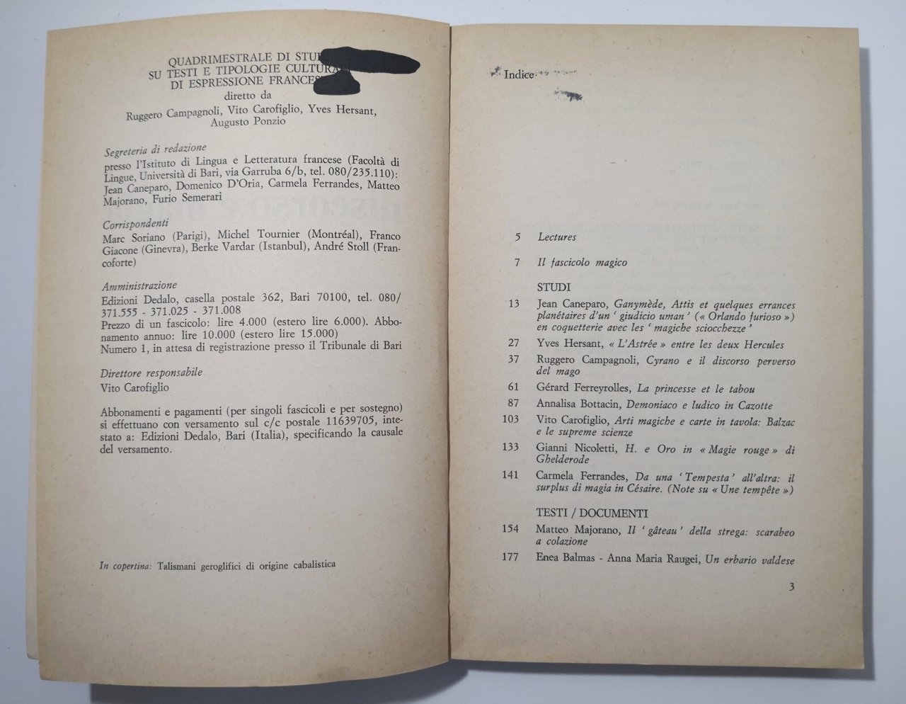 DISCORSO E MAGIA LECTURES 1 1979 Dedalo Libri Rivista Quadrimestrale Francese