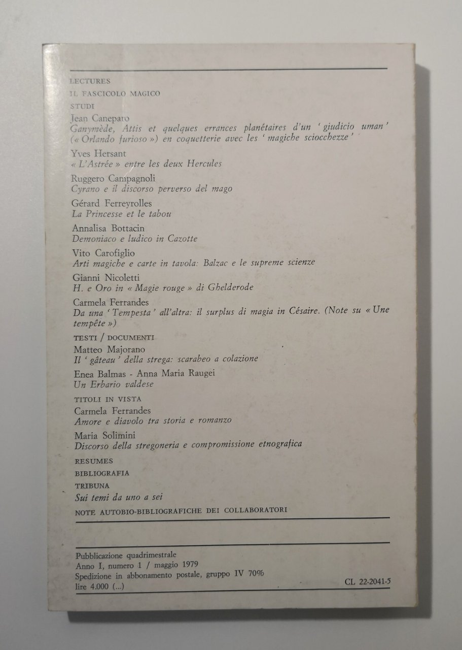 DISCORSO E MAGIA. LECTURES 1 Quadrimestrale di Studi su testi e tipologie culturali di espressione francese.