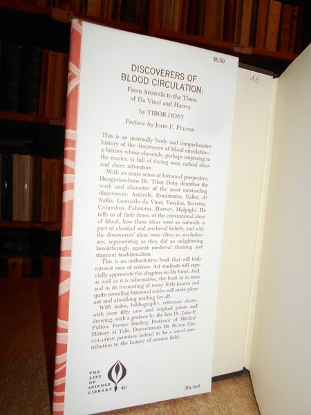 TIBOR, DOBY. London - New York - Toronto. Abelard-Schuman, 1963. DISCOVERERS of BLOOD CIRCULATION. From Aristotle to the Times of Da Vinci and Harvey. In-8° piccolo, tela nera con titolo al dorso, sovracopertina. (xvi), 285 pp. con numerose illustrazioni nel testo. Ottimo esemplare. Uff. C - IV - 4 - 2
