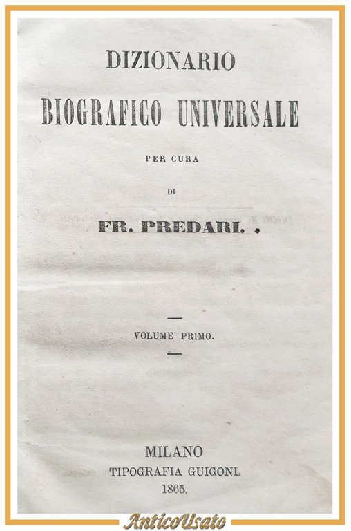 DIZIONARIO BIOGRAFICO UNIVERSALE di Predari volume I 1865 Guigoni Libro Antico